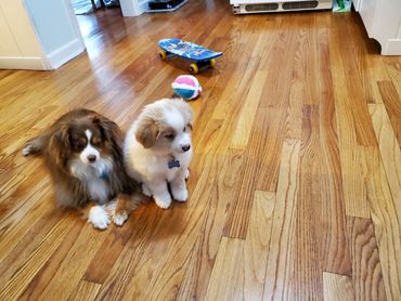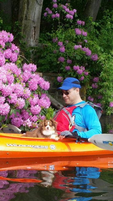 Charlie at 1 year & Hannah at 4 years old. Charlie has surpassed Hannah in size and together they have become the celebrity dogs of the neighborhood. Charlie is incredibly smart, agile, affectionate and loyal. He loves his football, bellie rubs and walks. Hannah is a little wiggle butt who loves to kayak, hike and ride in her doggie backpack on bike rides with Pete!