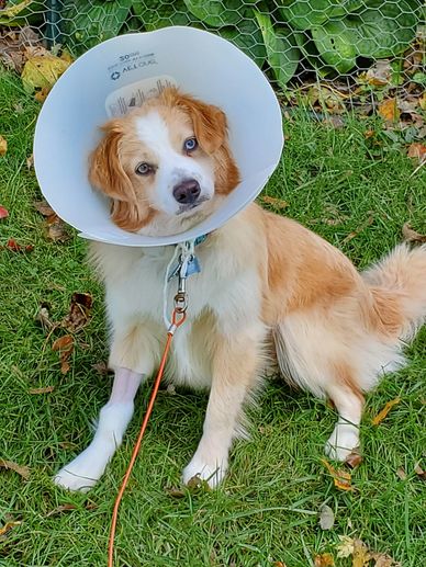 The Cone of Shame will not stop me from playing outside with my football and my daddy!