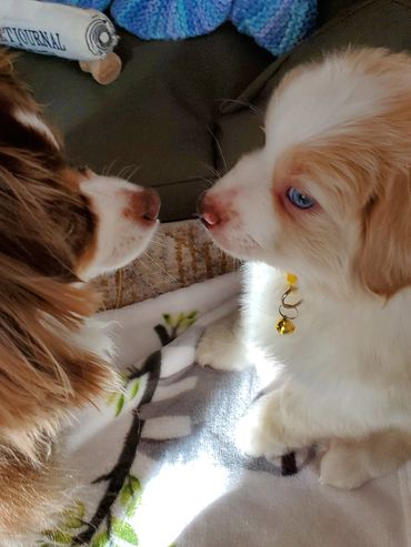 Hannah teaching Charlie how to look cute to get more treats!